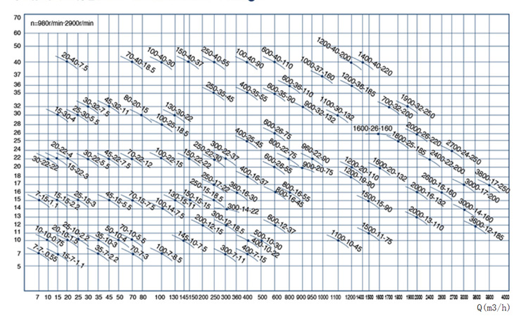 產品性能 流量:~4000m3/h 揚程:~60m 轉速:980r/min~2950r/min 介質溫度(T):T<+40℃ 設計標準:JB/T8857