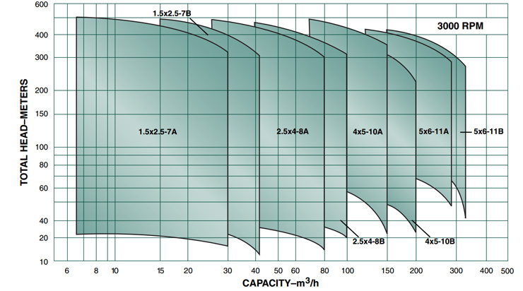產品性能 流量:~340m3/h 揚程:~500m 轉速:3000r/min(50Hz電源)